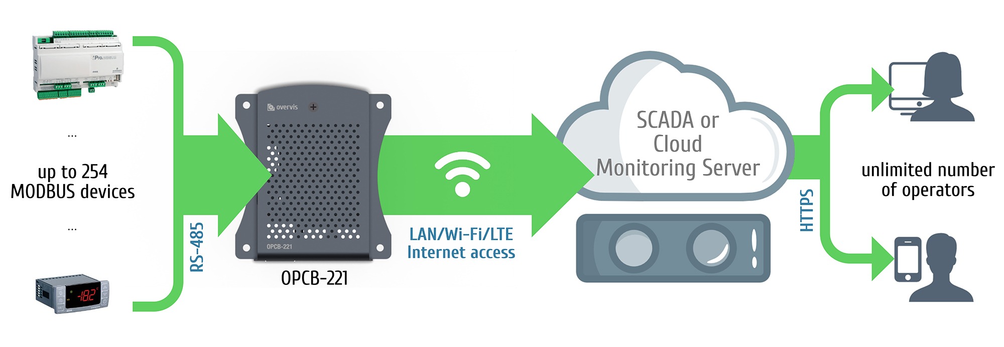 Due to simple configuration tools and low implementation costs, this approach is a good alternative to modern SCADA systems.