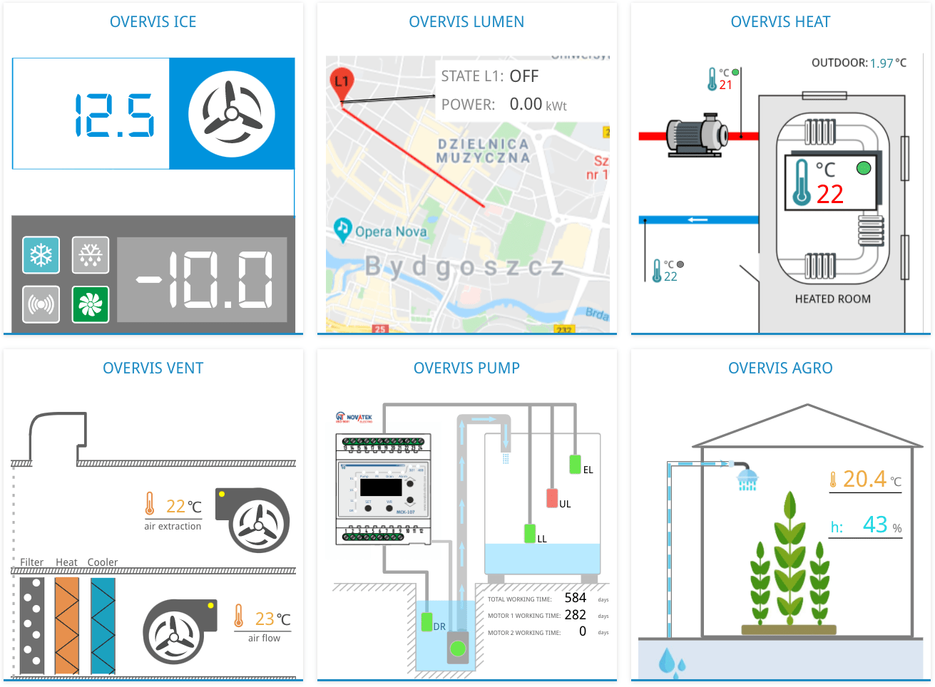 Monitor equipment operation via the Internet from any device.