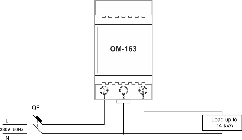 The OM-163 is designed to limit the consumed power as well as to disconnect the connected equipment in cases of: