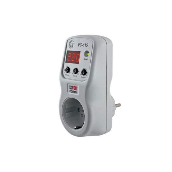 VC-115 voltage relay is designed to protect household appliances (equipment) with a power capacity of up to 3.5 kW (such as refrigerators, air conditioners, washing machines, TV and audio equipment, etc.) from unacceptable voltage fluctuations in the network and the effects of a neutral wire break.