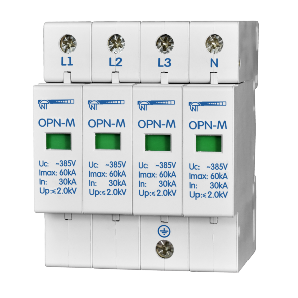 • OPN-M (4S) 30kA – Surge protection device, 4 modules, 380V; Nominal discharge current (In): 30kA
