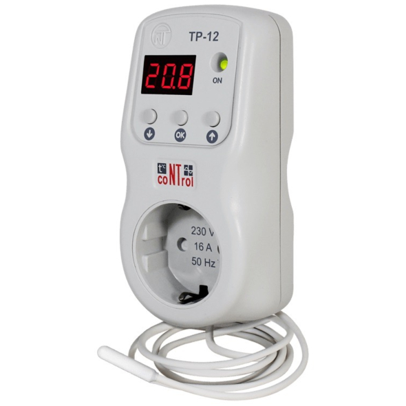 The TP-12 is used to control heating or cooling devices, maintaining the user-defined temperature.