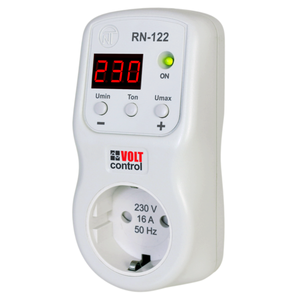 Voltage Relay RN-122 is designed to protect household appliances (equipment) with a power capacity of up to 3.6 kW (refrigerators, air conditioners, washing machines, television and audio equipment, etc.) from unacceptable voltage fluctuations in the power grid and the consequences of a neutral wire break.